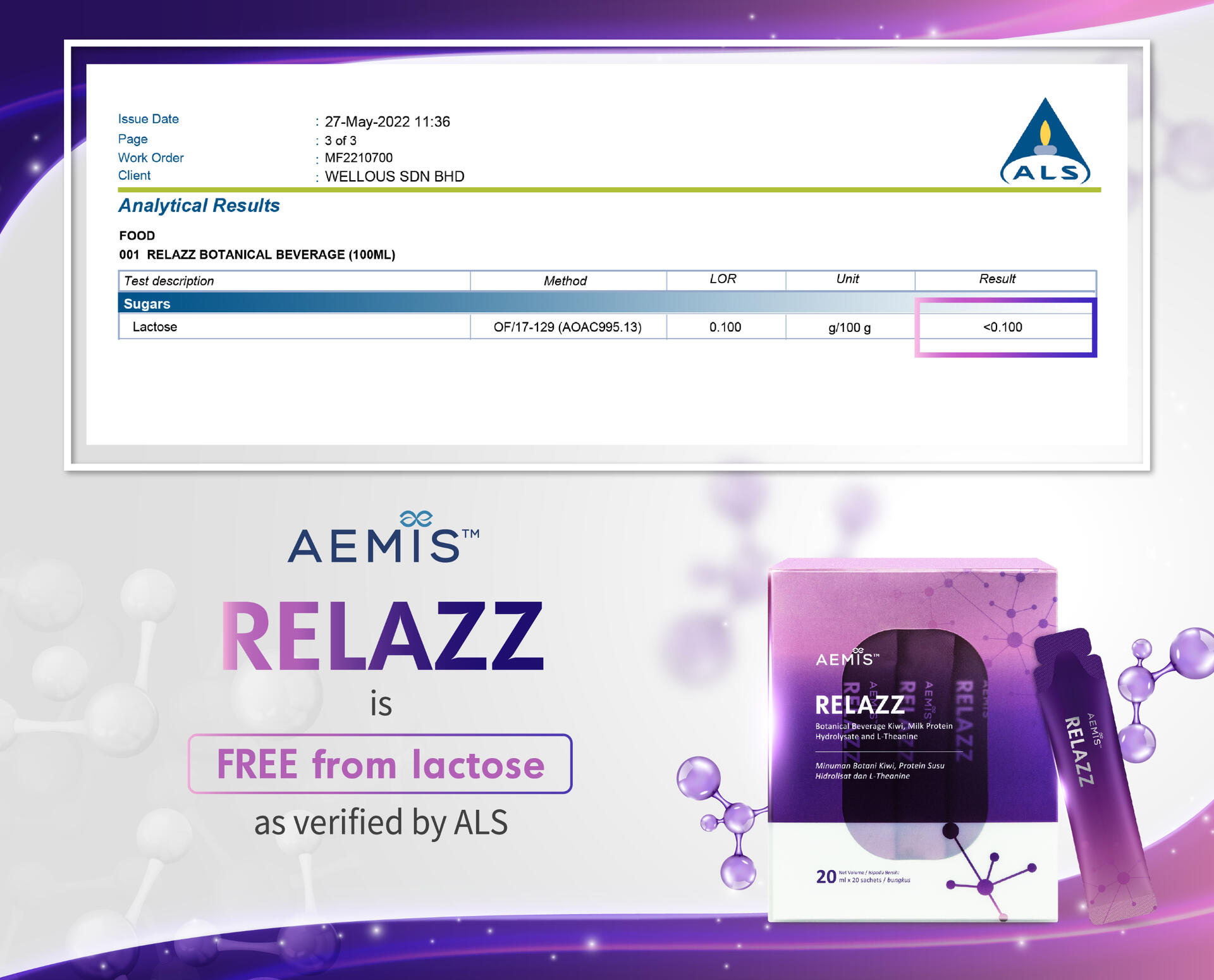 RELAZZ™ is a kiwi-flavored, ready-to-drink beverage crafted with premium, patented ingredients designed to support a relaxing night time routine. Each 20 mL sachet delivers a holistic blend designed to: